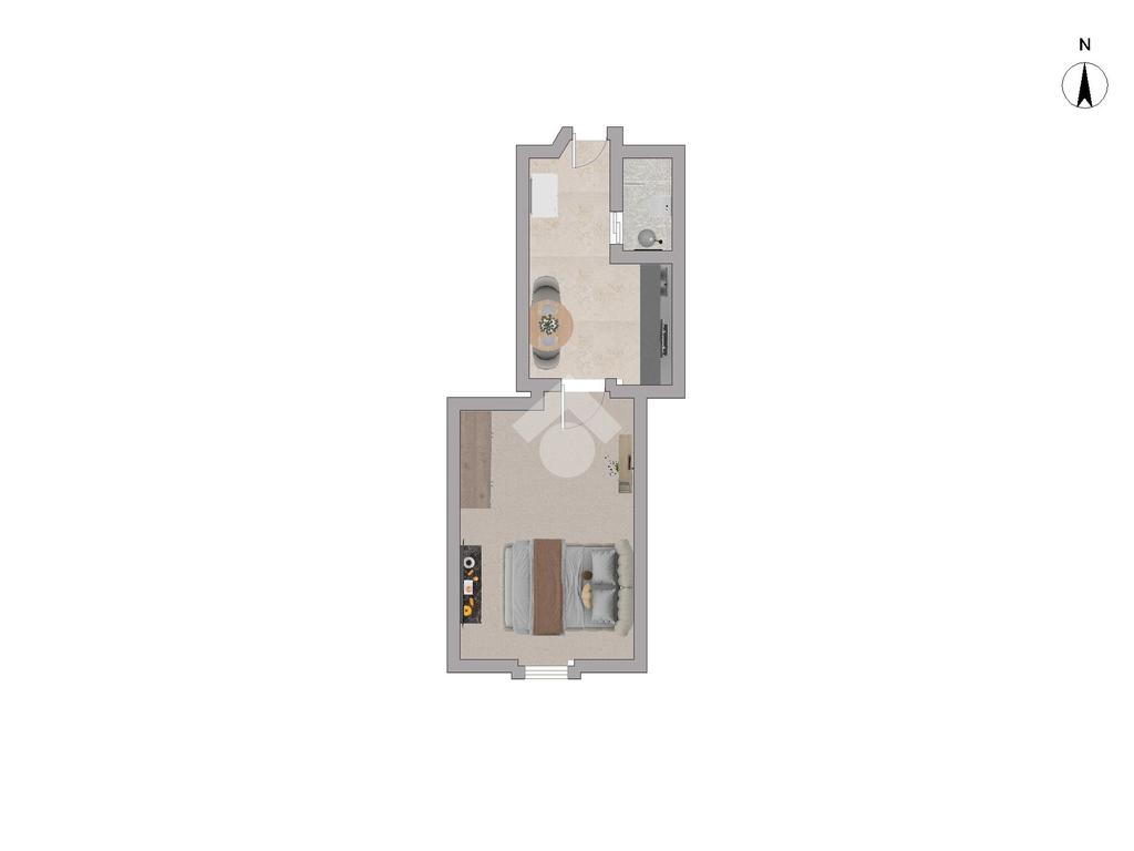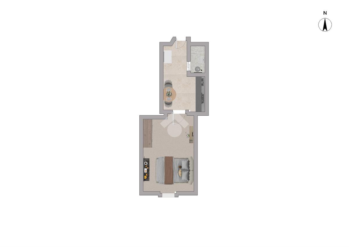 Internamente l'appartamento si presenta in buone condizioni. Ha l'ingresso in zona living con cucina. La camera da letto si presenta luminosa e di taglio matrimoniale, mentre il bagno ben organizzato.