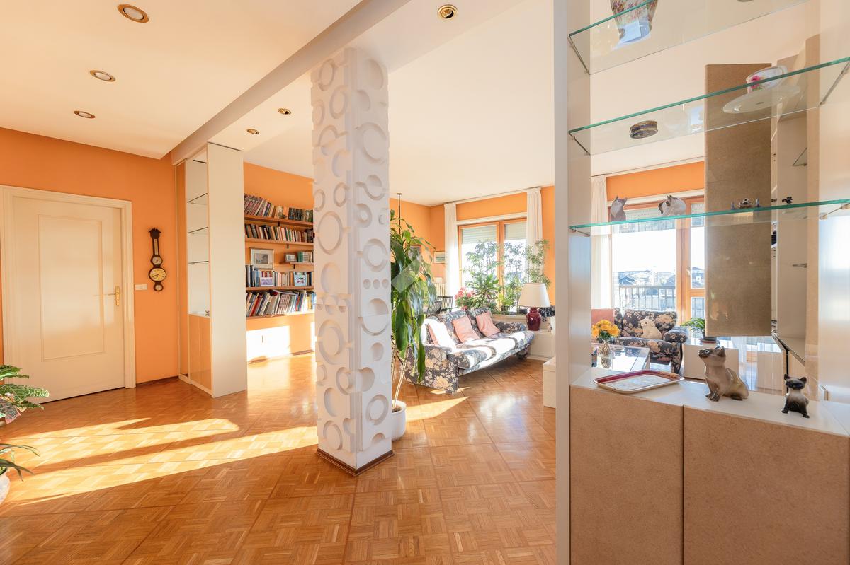Lo stabile edificato nei primi anni '70 si presenta in ottime condizioni ed è provvisto di ascensore. L' abitazione si trova al nono piano di dieci, garantendo una splendida vista panoramica.